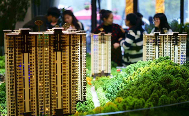 People look at miniature models of new apartments at a property sale centre in Yichang, Hubei province. (Reuters File Photo)