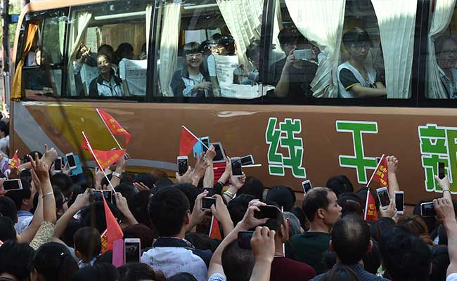 Parents seeing their children off at the gate of Maotanchang High School as the students leave for Liuan city to sit the 2015 college entrance exam of China, or the "gaokao", in Liuan, east China's Anhui province on June 5, 2015. (AFP)