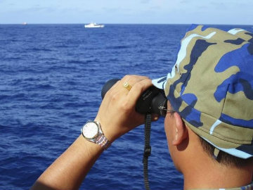 A crewman from the Vietnamese coastguard ship 8003 keeps watch (Reuters)