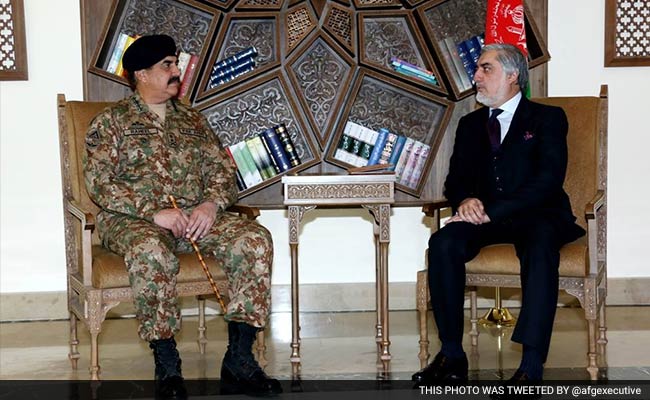 Pakistan Army chief General Raheel Sharif (L) visited Kabul and held wide-ranging talks with Afghanistan's Chief Executive Dr Abdullah (R) on ways to revive stalled peace talks with the Taliban.