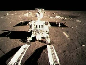 This image taken from video shows China's first moon rover touching the lunar surface and leaving deep traces on its loose soil on Sunday, December 15 2013, several hours after the country successfully carried out the world's first soft landing of a space