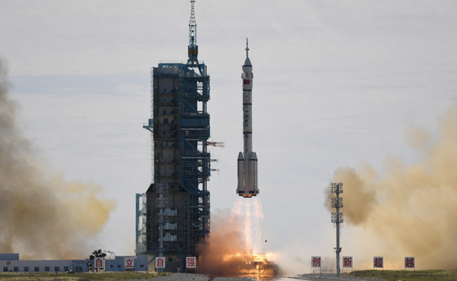 The trio launched on a Long March-2F rocket for the Tiangong station, where they will spend three months, in a much-anticipated blast-off broadcast live on state TV.