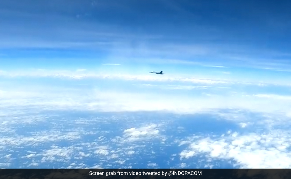 A video showed a fighter jet passing in front of the U.S. plane's nose and the cockpit of the RC-135 shaking in the turbulence.