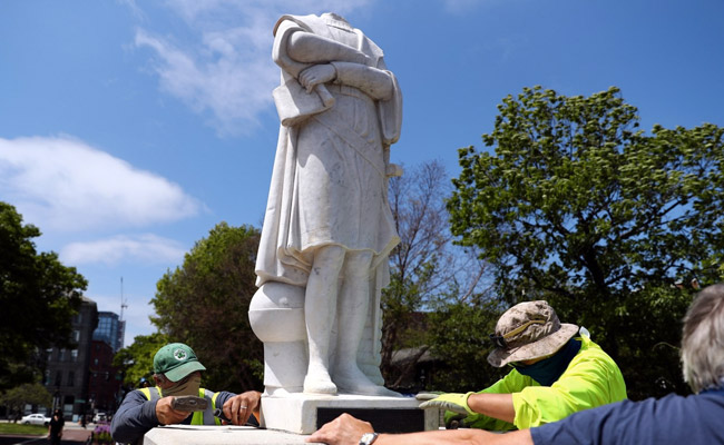 A statue of Christopher Columbus in Boston has been beheaded, police said Wednesday, as calls to remove sculptures commemorating colonizers and slavers sweep America on the back of anti-racism protests.
