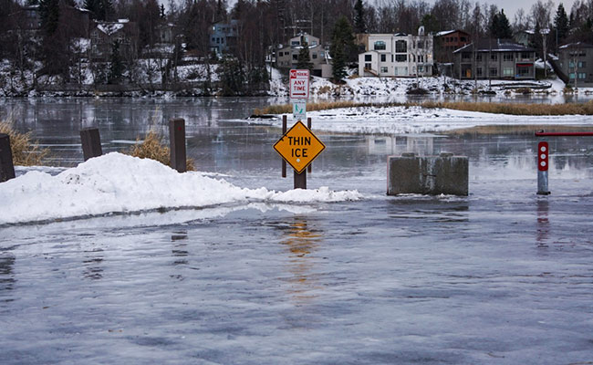 Extreme weather in Alaska that has brought record high temperatures and torrential downpours has left authorities in the far northern US state warning of "Icemageddon".