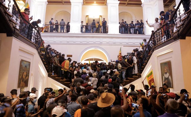Protesters seized the residence and were later seen frolicking in the presidential pool and jumping on Rajapaksa's four-poster bed.