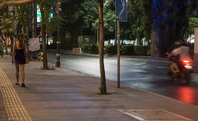 The occasional tourist loiters near clusters of sex workers, before a furtive negotiation and a quick march to a nearby hotel, one of the few still open on Bangkok's main tourist drag.