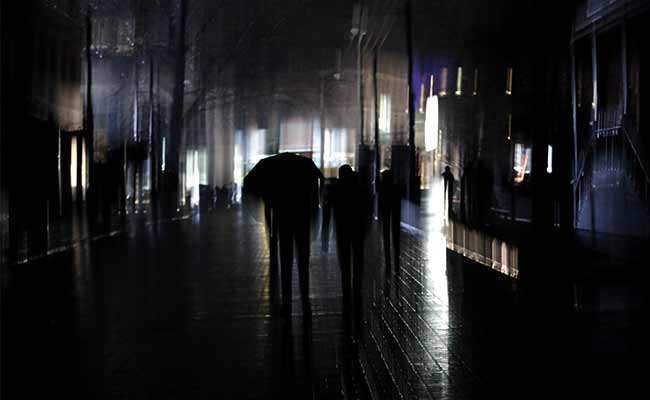 A file picture taken on December 26, 2014 shows a man walking with an umbrella during a power outage in the Crimean city of Simferopol. (AFP Photo)