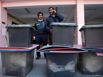 A Nepal election commission officer gets ready to deliver ballot boxes to different polling booths in Kathmandu. (AP)