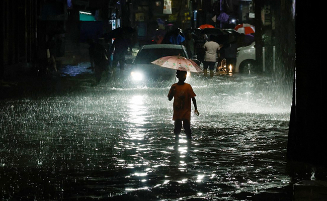 Heavy rain fell on the streets of the capital, Dhaka, causing some flooding and disruption to commuters.