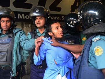 Bangladeshi police detain a suspected activist of Hizb-ut-Tahrir, a banned Islamist militant organisation, in Dhaka on December 27, 2013, as Hizb-ut-Tahrir supporters attempted a demonstration march following Friday prayers.