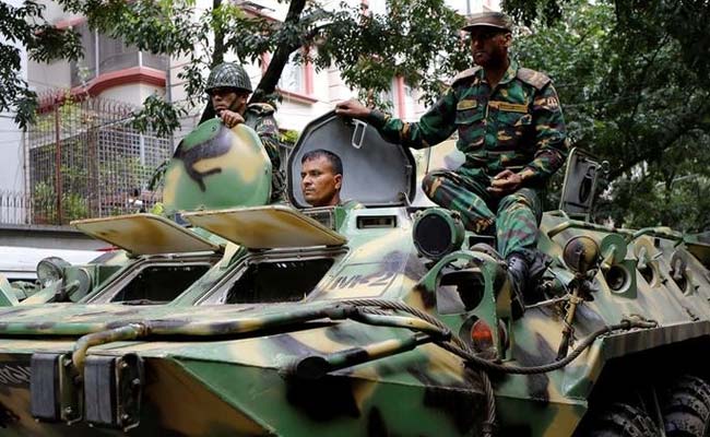 Army soldiers atop an armored military vehicle drive near the Holey Artisan restaurant after Islamist terrorists attacked the upscale cafe in Dhaka, Bangladesh, on July 2, 2016. (Reuters Photo)