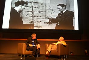Nobelist James D Watson (right) in conversation with Prof Luke O'Neill of Trinity College Dublin at the ESOF in Dublin
