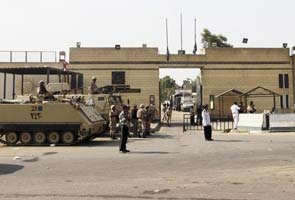 Photo of Egyptian soldiers stand guard in front of Torah prison where Hosni Mubarak is detained