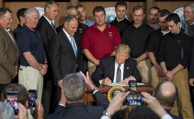 Trump signed the order with EPA Administrator Scott Pruitt, Interior Secretary Ryan Zinke, Energy Secretary Rick Perry and Vice President Mike Pence by his side.