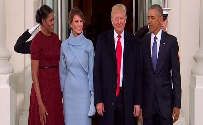 Trump and his wife Melania then shuttled to the White House for the traditional private meeting of outgoing and incoming presidents and their spouses. Posing for photos on the North Portico, the couples exchanged hugs as Barack Obama chatted about the demands of protocol.