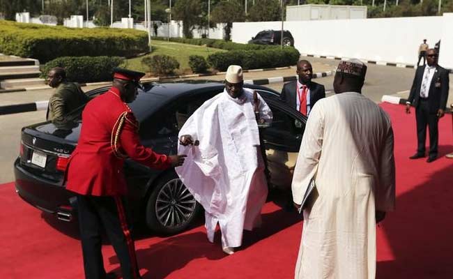 Gambian President Yahya Jammeh (C) arrives at the Abuja International Conference Centre, venue of Nigeria's centenary celebrations, February 27, 2014.(Reuters)