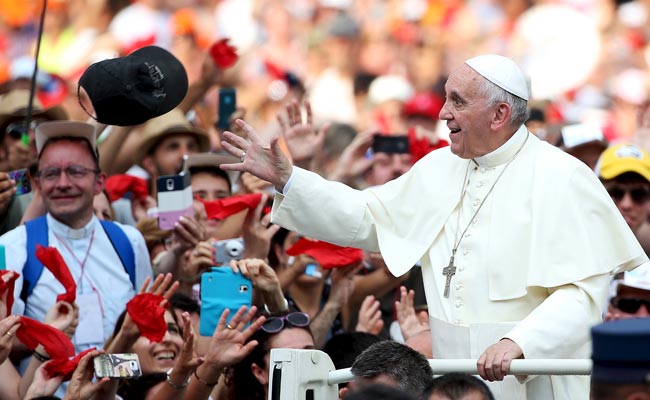 Pope Francis tries to take a cap as he arrives to lead a special audience for members of the Renewal in the Holy Spirit movement in Saint Peter's square at the Vatican July 3, 2015. (Reuters Photo)