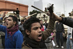 Even as pockets of protesters clashed with police, army tanks expected to disperse the crowds in central Cairo and in the northern city of Alexandria instead became rest points and even, on occasion, part of the protests as anti-Mubarak graffiti were scrawled on them without interference from soldiers.