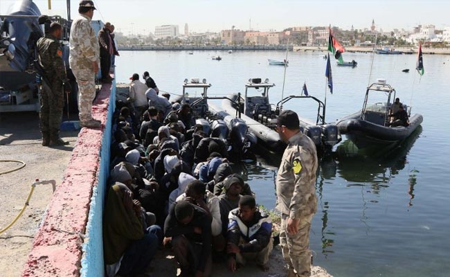 Illegal migrants sit on the dock at the Tripoli port after they were rescued when their boat started sinking off the Libyan coast on April 11, 2016. (AFP Photo)
