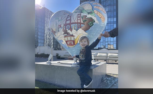 Elon Musk on Thursday shared pictures of his two-year-old son near Twitter headquarters in San Francisco, United States. In the images, X AE a Xii, one of Mr Musk's 10 kids, was seen posing in front of a heart sculpture in San Francisco's Union Square. The tech billionaire also shared a photo of his son's Twitter badge, which holds his picture, name and three dots in the place where his role would be listed.