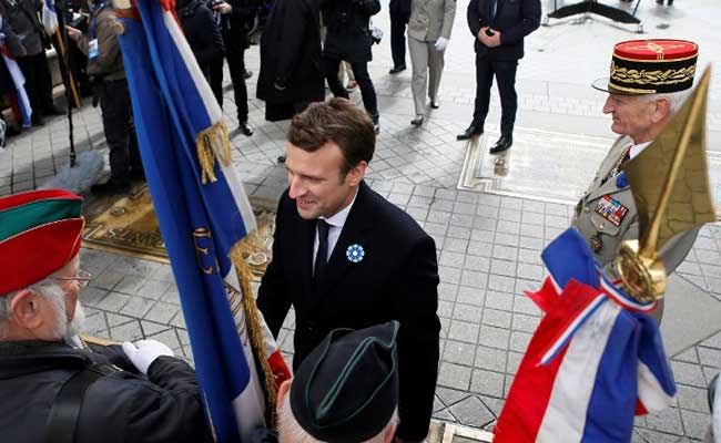 On Monday, he appeared alongside the man he will succeed as president, President Francois Hollande, at the commemoration of Victory in Europe day on May 8, 1945.