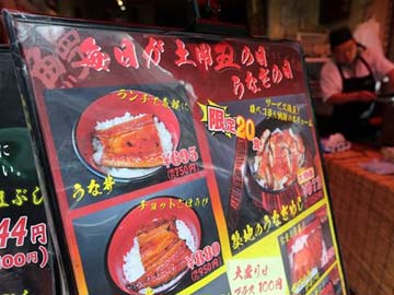 A menu of eel dish is displayed at an eel specialised restaurant in Tokyo, Friday, June 13, 2014.