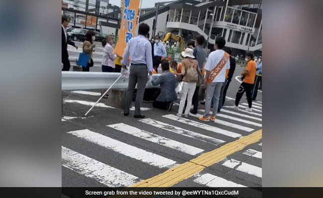 Abe collapsed, visibly bleeding, and bystanders began to administer cardiac massage, witnesses said.