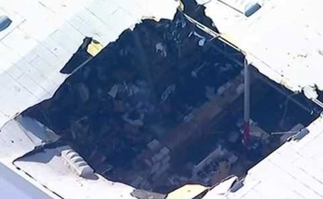 The Los Angeles Times, citing a base fire official, reported that the crash ignited a small fire, and a photo of the accident scene posted on local television station KCAL-TV showed a gaping hole in the roof of a large gray building.