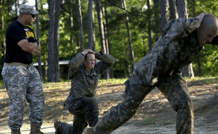US Army handout photo, soldiers, including females, are tested physically during the Ranger Course Assessment(RCA) on Fort Benning, Georgia April 21, 2015. (AFP Photo)