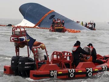 South Korean Coast Guard officers try to rescue missing passengers from a sunken ferry in the water off the southern coast near Jindo, south of Seoul. (File picture)