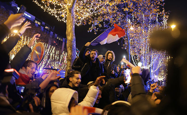 There were jubilant scenes on the Champs-Elysees avenue in central Paris on Wednesday as French supporters waved tricolour flags and let off flares to celebrate the win over Morocco that put Les Bleus into the World Cup final.