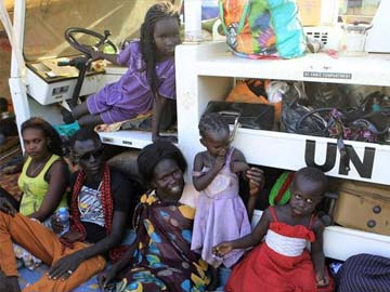 Displaced families are seen camped inside Tomping UN base near Juba international airport on December 24, 2013.