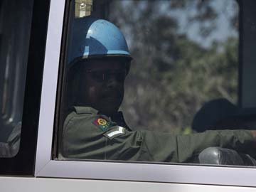 A UN peacekeeper from Fiji seen through a bus window in Golan Heights on August 31 (REUTERS)