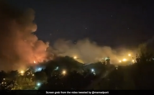 Flames and a plume of smoke could be seen billowing into the night sky and the sound of what appeared to be gunfire could be heard in video footage shared by the Oslo-based Iran Human Rights on Twitter.