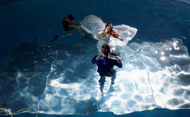 Xu Jiaqian poses in pool as she has picture taken for her wedding photo series.
