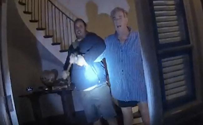 The police body camera footage, released by a court, shows suspect David DePape and Paul Pelosi standing side by side just inside the house.