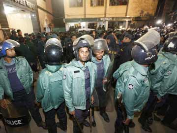 Police officers stand guard in front of the central jail in Dhaka on December 12, 2013