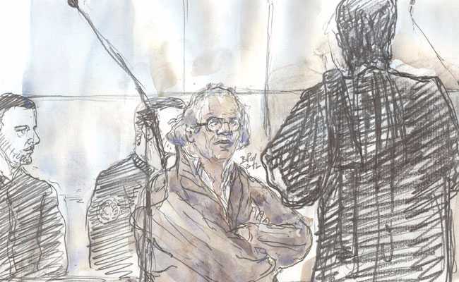 Photo of a court sketch shows Abdelhakim Dekhar (C) on the opening day of his trial in a Paris courtroom