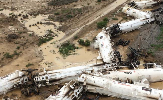 Aerial photographs showed wagons lying on their side strewn around the area, which has also been hit by heavy rain and flooding