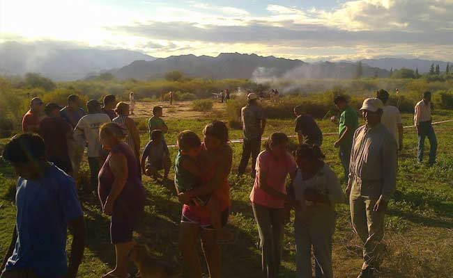 File Photo: People gather near the smoking remains of a helicopter that crashed with another near Villa Castelli in the La Rioja province of Argentina, Monday, March 9, 2015. (Associated Press)