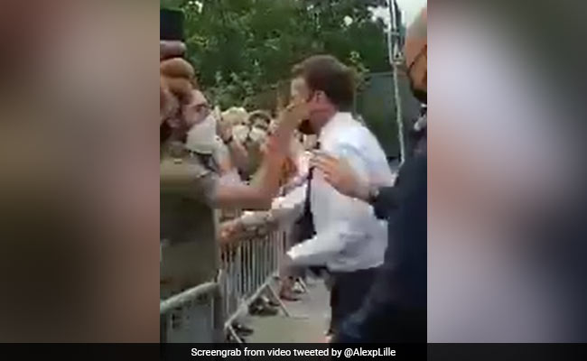 Images on social media and broadcast on the BFM news channel showed Macron approach a barrier to greet a man who, instead of shaking hands, slapped the 43-year-old across the face.