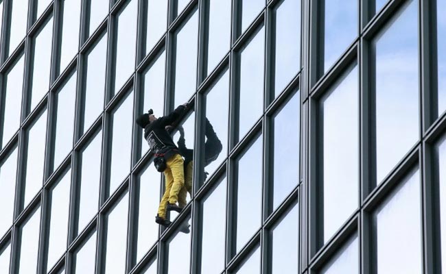 Alain Robert, the French urban climber dubbed Spiderman, climbs a building of La Defense business area. (AFP Photo)