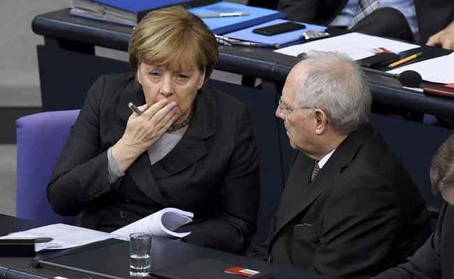 German Chancellor Angela Merkel and German Finance Minister Wolfgang Schaeuble during a plenary session of the German lower house of parliament. (AFP)