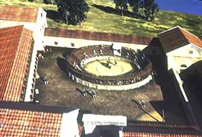 A virtual video presentation of the former Carnuntum gladiator school showed images of the ruins underground shifting into what the complex must have looked like in the third century.