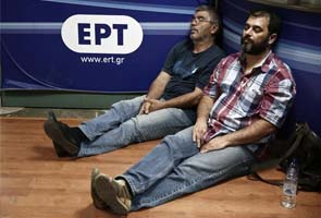 Protesters sleep inside the Greek state television ERT headquarters