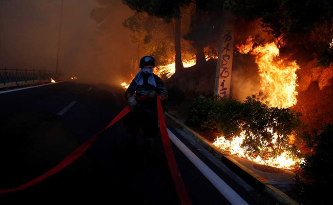 Earlier on Monday, Greek authorities urged residents of a coastal region west of Athens to abandon their homes as another wildfire burned ferociously, closing one of Greece's busiest motorways, halting train links and sending plumes of smoke over the capital.
