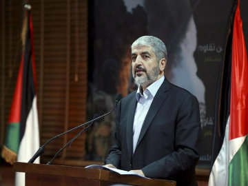 Hamas leader Khaled Meshaal talks during a news conference. (Reuters)