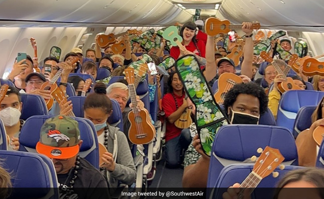 Southwest airlines tweeted a photo in which passengers can be seen holding ukuleles in their hands. The airlines in the captions said by the time the passengers reached Hawaii they were all pros. "We teamed up with @guitarcenter to surprise a flight full of Customers flying out of Long Beach with a ukulele and a lesson. By the time they arrived in Honolulu they were pros" read the caption.