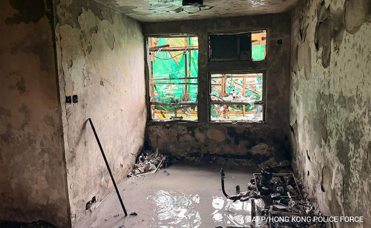A charred air conditioner (AC) sits between a broken window frame. The walls, once yellow in colour, stand as a witnesses to the horrendous fire, bearing smoke marks. On the ground lie remnants of fire - debris, ash, charred wood and metal items. What began as a small fire on the first floor of an apartment building on Wednesday (November 26) afternoon swelled into an inferno, engulfing eight high-rises of Wang Fuk Court, a housing complex in Hong Kong's Tai Po.